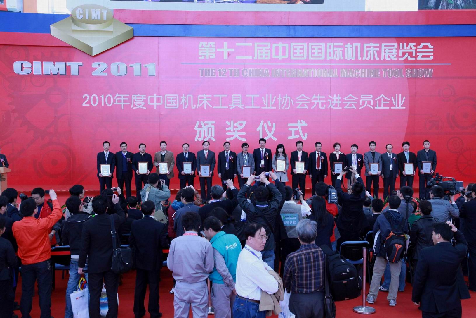 4月11日,2010年度中國機床工具工業(yè)協(xié)會先進會員企業(yè)頒獎儀式在北京第十二屆中國國際機床展覽會(CIMT2011)上舉行,受董事長、總經(jīng)理康鳳明委托,常務(wù)副總經(jīng)理潘憲平代表公司參加了頒獎儀式并上臺領(lǐng)獎。