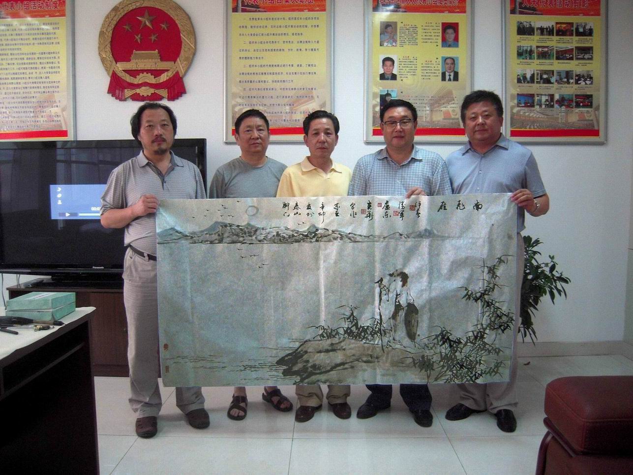 經(jīng)過一天的即興創(chuàng)作,4位畫家共創(chuàng)作書畫作品28 件,作品內容豐富多彩,格調清新高雅、風格各異,展現(xiàn)人間真、善、美。具有較高的藝術水平和觀賞價值。書言志,畫傳情,讓人不禁置身于畫的意境,在這炎炎夏日,感到陣陣清涼,神清氣爽。其中一幅《南飛燕》作品由四位畫家合作而成:浪水滔滔,長空中一群大雁歌聲長鳴,一位智者仰望天空,越發(fā)感人深思。表現(xiàn)了幾位藝術家深厚的生活積累和不俗的藝術功底,博得公司領導的一致好評。