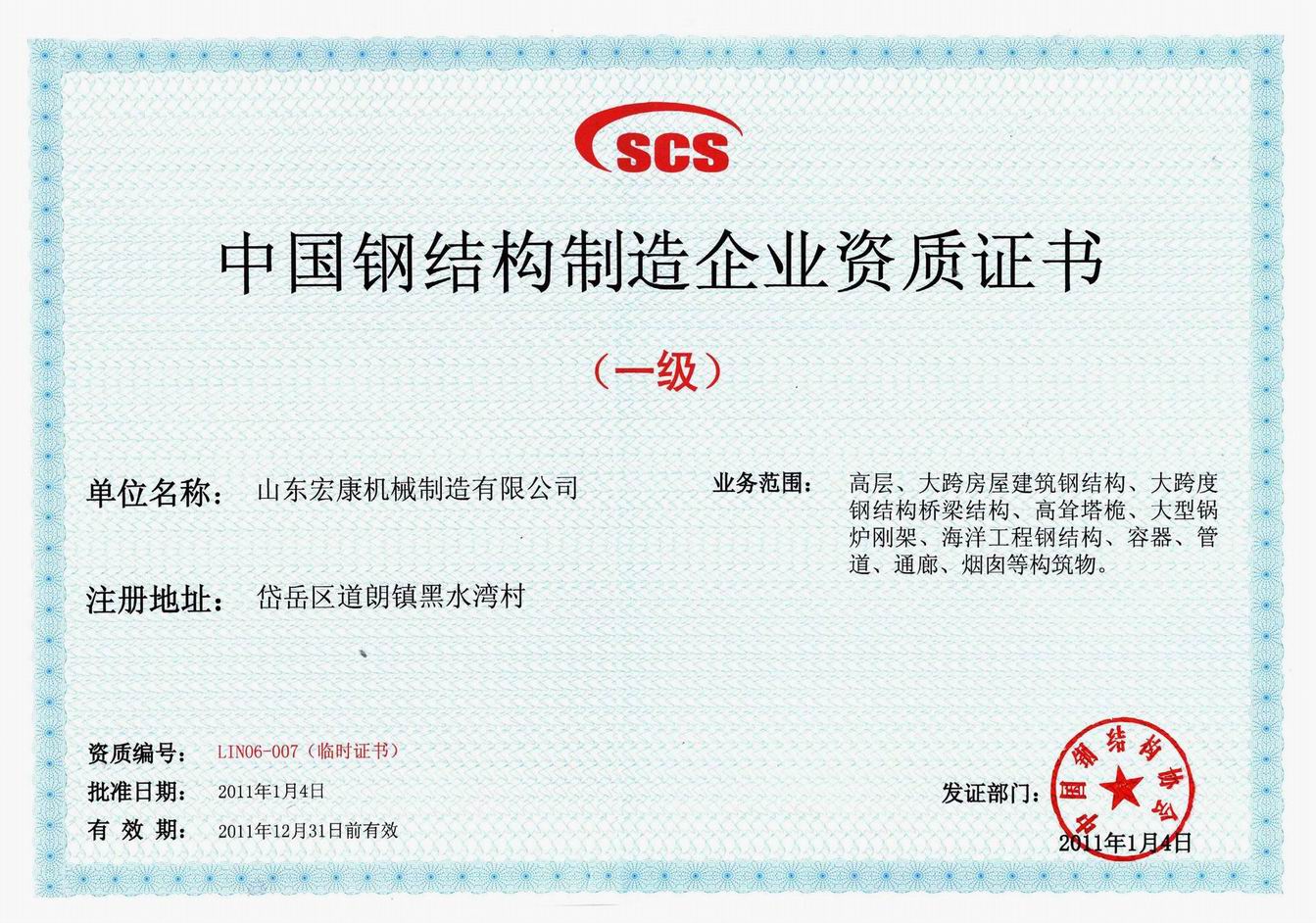 2010年12月28—29日,中國鋼結構協(xié)會委派資質評審專家組來我公司進行現(xiàn)場考評,教授級高級工程師,中國鋼結構協(xié)會副秘書長劉萬忠率領專家組成員認真對公司現(xiàn)場和有關資料進行了考評,最終評定我公司為中國鋼結構制造一級企業(yè)。